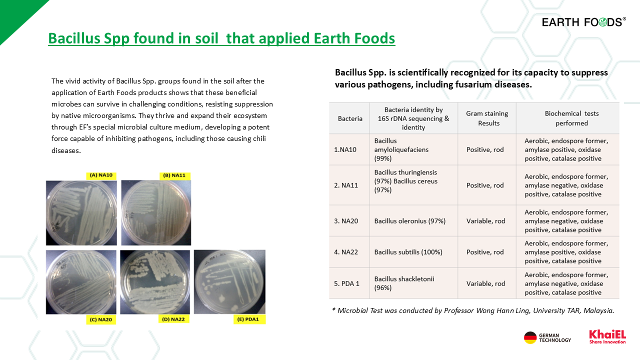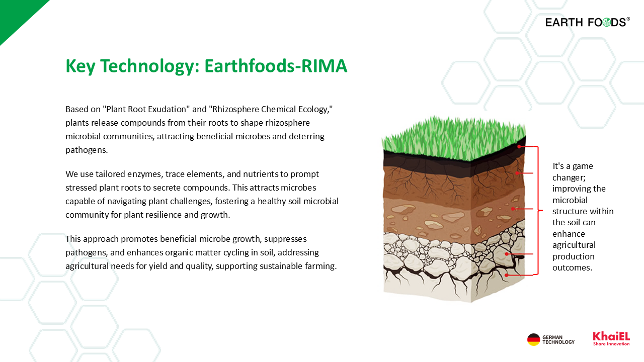 The core technology of Earth Foods lies in utilizing micro-science to integrate resilient microbial ecosystems into agricultural systems, bridging the gap between organic and inorganic elements. This enables inorganic materials to develop microbe-friendly properties, fostering a diverse and balanced soil microbiome.