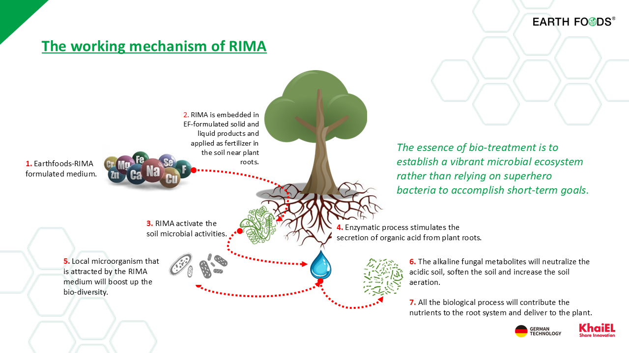 When applied as a product, it functions as a Resilient Indigenous Microbial Activator (RIMA). RIMA can be seamlessly incorporated into various product lines, including fertilizers, organic fertilizers, compost, soil conditioners, plant growth stimulants, and foliar fertilizers (both organic and inorganic). By enhancing microbial resilience and biodiversity, RIMA transforms these products into catalysts for healthier, more sustainable agricultural soils.